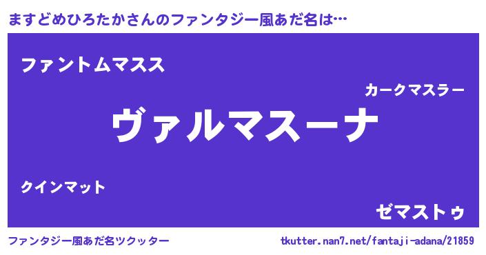 | 男性向けラノベタイトル風あだ名 | 『この素晴らしい世界にますどめひろたかを!』 |