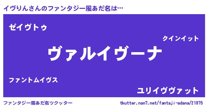 | 男性向けラノベタイトル風あだ名 | 『イヴりんに滅ぼされるだけの簡単なお仕事です』 |