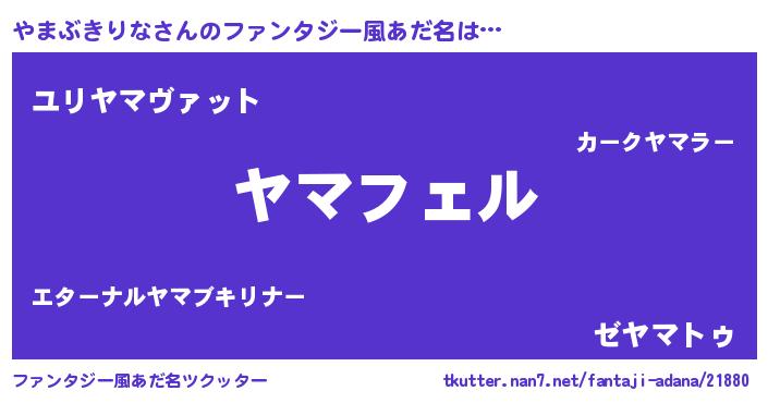 | 男性向けラノベタイトル風あだ名 | 『ヤマブキリナアートオンライン』 |