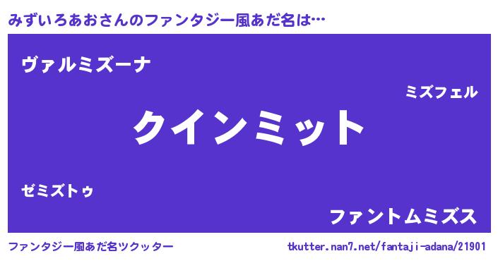 | 男性向けラノベタイトル風あだ名 | 『みずいろあおに滅ぼされるだけの簡単なお仕事です』 |