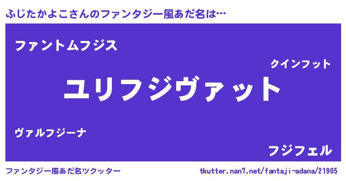 | 男性向けラノベタイトル風あだ名 | 『フジタカヨコスレイヤー』 |