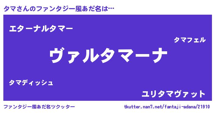 | 意味不明あだ名 | 『住所不定無職タマ(95歳)』『ペロリンタマ』 |
