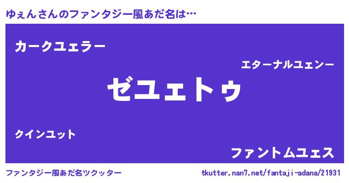 | ヒーロー風カッコイイあだ名 | 『最強戦士ユェン』『暗黒騎士ユェ』 |