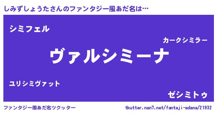 | 女子向けラノベタイトル風あだ名 | 『悪役しみずしょうたに転生したようですが、知った事ではありません』 |