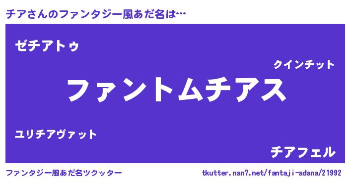 | 女子向けラノベタイトル風あだ名 | 『チア様がみてる』『死神チアの再婚』 |
