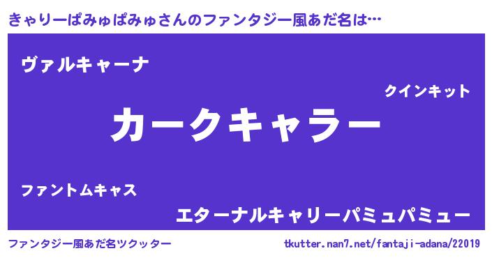 | 男性向けラノベタイトル風あだ名 | 『きゃりーぱみゅぱみゅに滅ぼされるだけの簡単なお仕事です』 |