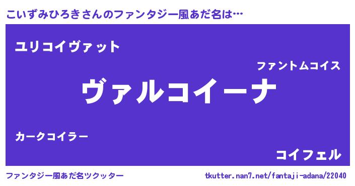 | 男性向けラノベタイトル風あだ名 | 『魔弾の王とこいずみひろき』 |