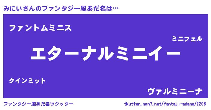 | 欧米人風あだ名 | 『アンジェラ・みにい』『ウサインみにい』 |