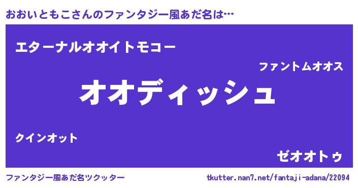 | 女子向けラノベタイトル風あだ名 | 『おおいともこの契約王妃』 |
