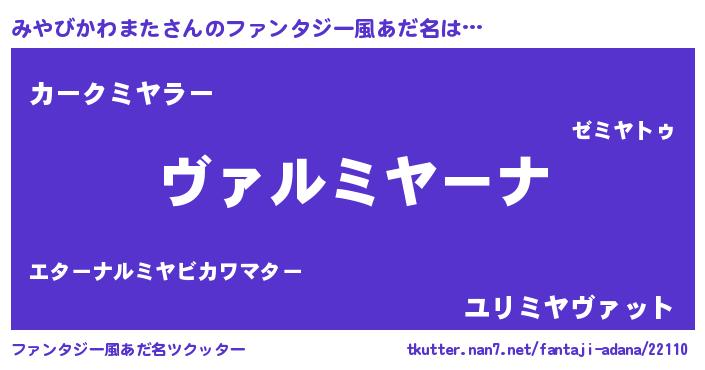 | 男性向けラノベタイトル風あだ名 | 『この素晴らしい世界にみやびかわまたを!』 |