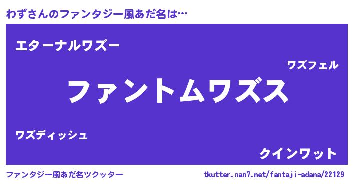 | 女子向けラノベタイトル風あだ名 | 『わずの卵を拾いまして』『わず恋絵巻』 |