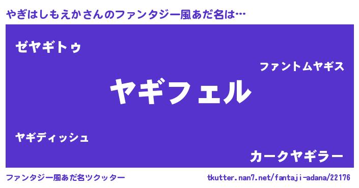 | ヒーロー風カッコイイあだ名 | 『スーパーヤギハシモエカ』 |