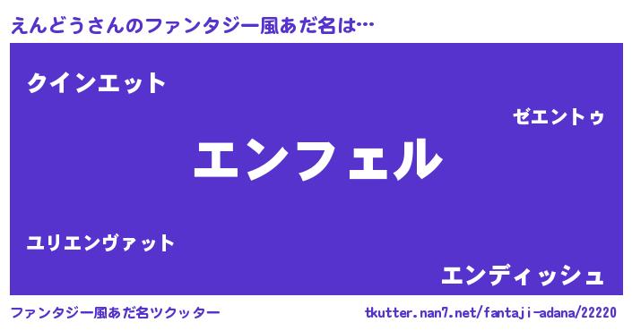 | ヘコむあだ名 | 『えんにー』『えんどう(遠い目)』 |
