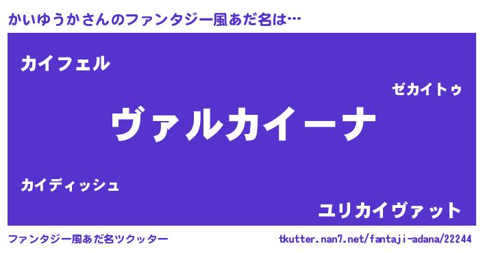 | 男性向けラノベタイトル風あだ名 | 『この素晴らしい世界にかいゆうかを!』 |