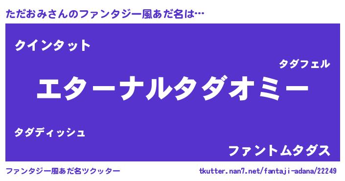 | 女子向けラノベタイトル風あだ名 | 『ただおみ伯爵の花嫁』『ただおみ恋絵巻』 |
