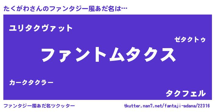 | 意味不明あだ名 | 『とにかく怪しいたくがわ』 |