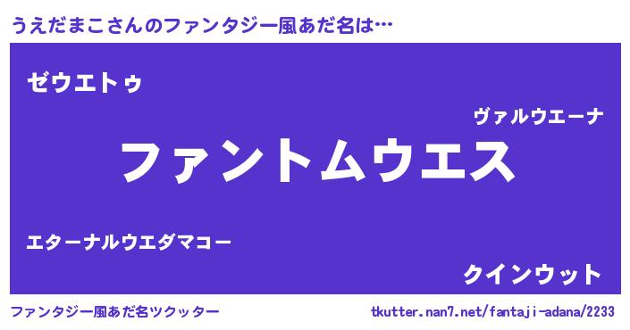 | ポケモン風あだ名 | 『ヒウエダマコ』『ウエセウス』 |