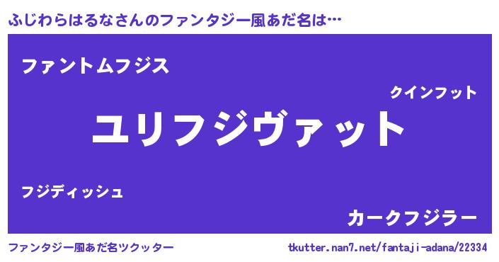 | 男性向けラノベタイトル風あだ名 | 『転生したらふじわらはるなだった件』 |