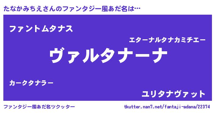 | 女子向けラノベタイトル風あだ名 | 『乙女ゲームの破滅フラグしかない悪役たなかみちえに転生してしまった…』 |