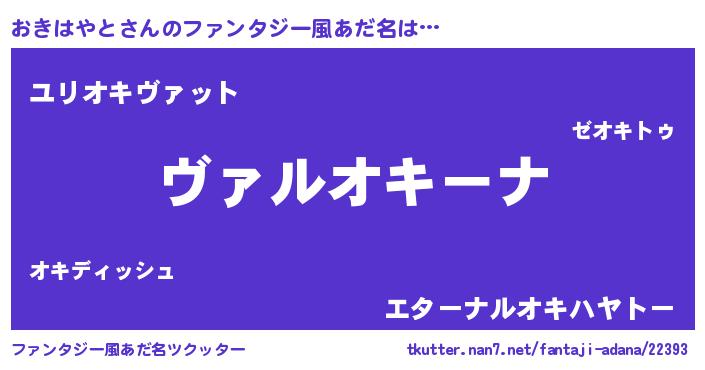 | 男性向けラノベタイトル風あだ名 | 『魔弾の王とおきはやと』 |