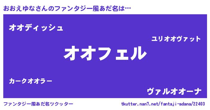| 胡散臭い通販商品みたいなあだ名 | 『億万長者になれる水晶球…その名も「おおえゆな」』 |