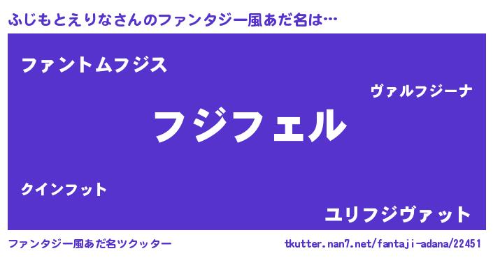 | ポケモン風あだ名 | 『フジチュウ』『ヒフジモトエリナ』 |