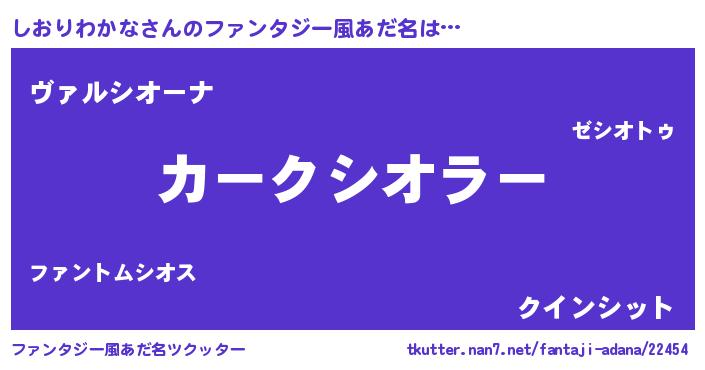 | 意味不明あだ名 | 『住所不定無職しおりわかな(71歳)』 |