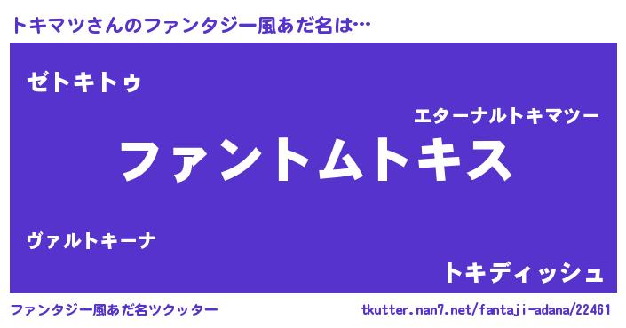 | ポケモン風あだ名 | 『ヒトキマツ』『トキセウス』 |