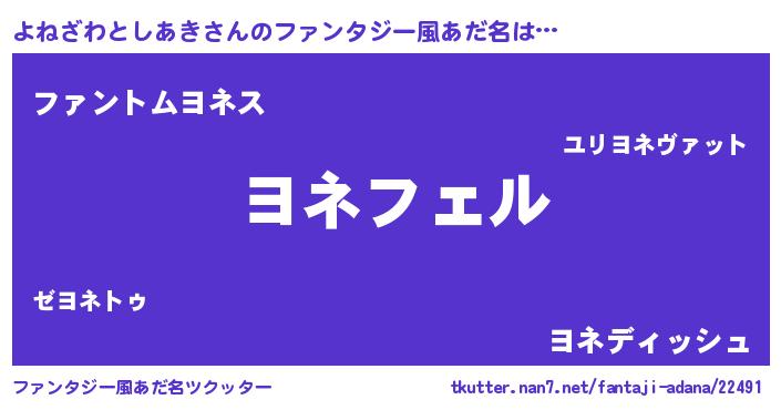 | 男性向けラノベタイトル風あだ名 | 『よねざわとしあきの憂鬱』 |