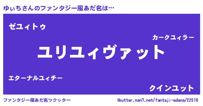 | 男性向けラノベタイトル風あだ名 | 『ユィチスレイヤー』 |