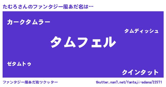 | 自動車の名前っぽいあだ名 | 『タムティマ』『フェターム』 |
