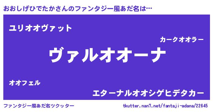 | 男性向けラノベタイトル風あだ名 | 『この素晴らしい世界におおしげひでたかを!』 |