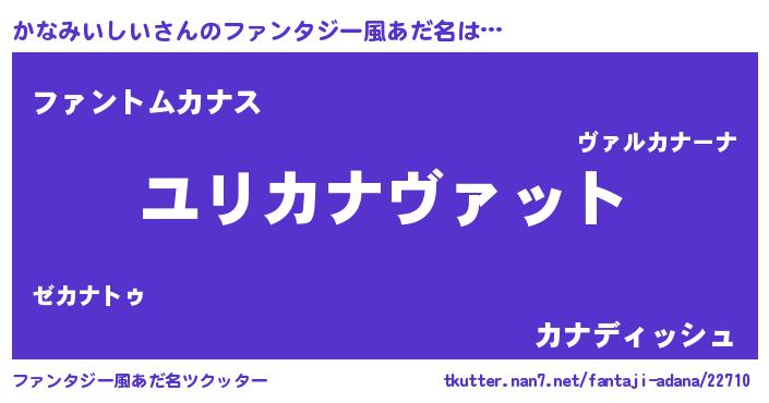 | 男性向けラノベタイトル風あだ名 | 『かなみいしい~年齢イコール彼女いない歴の魔法使い~』 |