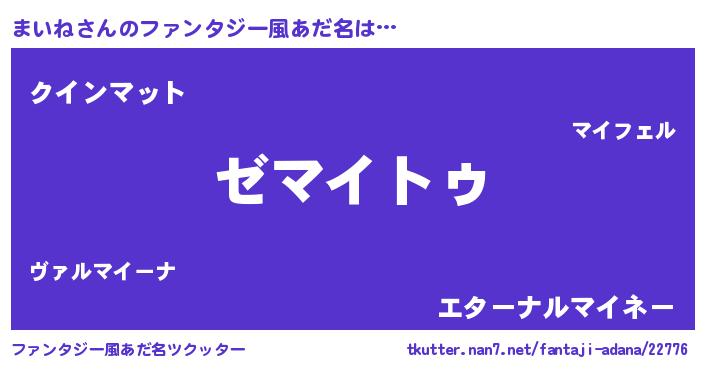 | 男性向けラノベタイトル風あだ名 | 『Re:まいねから始める異世界生活』 |