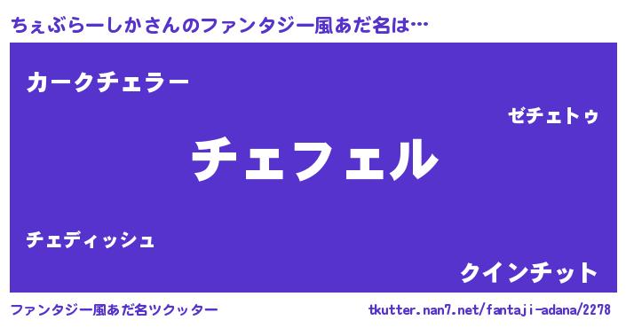 | 胡散臭い通販商品みたいなあだ名 | 『モテモテ間違いなし水晶球…その名も「ちぇぶらーしか」』 |