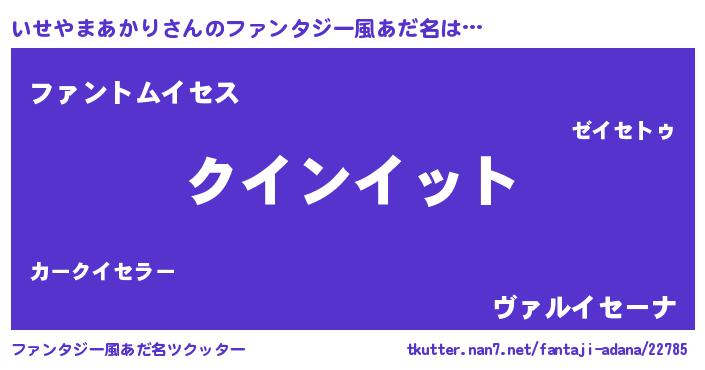 | 男性向けラノベタイトル風あだ名 | 『おまえをオタクにしてやるから、俺をいせやまあかりにしてくれ! 』 |