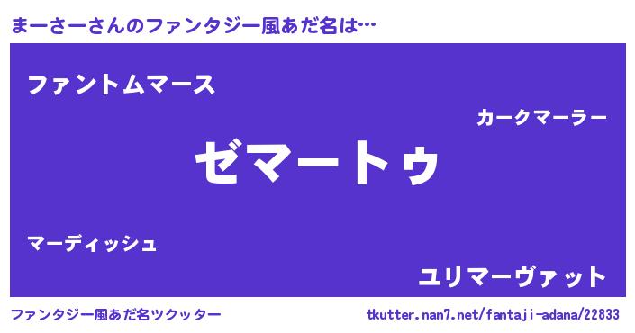 | ヒーロー風カッコイイあだ名 | 『ウルトラ戦士マーサー』『幻影騎士マー』 |