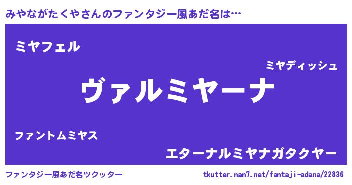 | ヒーロー風カッコイイあだ名 | 『仮面ミヤダー』『ネオミヤナガタクヤ』 |