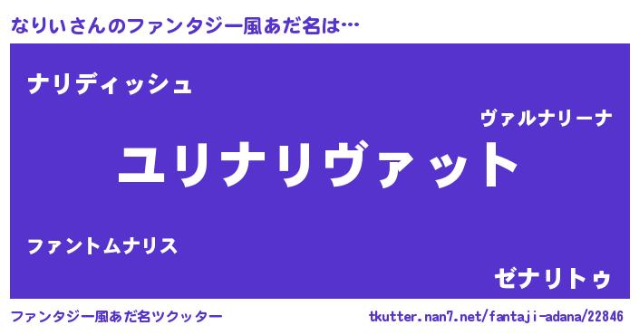| 男性向けラノベタイトル風あだ名 | 『ナリイスレイヤー』『魔弾の王となりい』 |