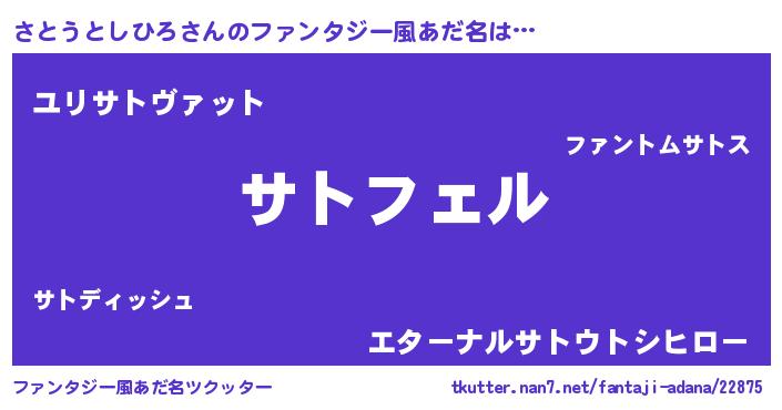 | 男性向けラノベタイトル風あだ名 | 『サトウトシヒロアートオンライン』 |