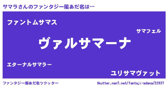 | 男性向けラノベタイトル風あだ名 | 『サマラに滅ぼされるだけの簡単なお仕事です』 |