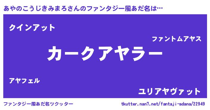 | 男性向けラノベタイトル風あだ名 | 『うちのあやのこうじきみまろが世界を掌握している!』 |