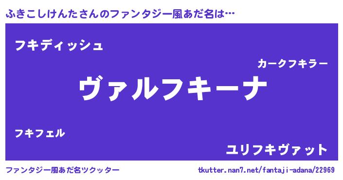 | 男性向けラノベタイトル風あだ名 | 『魔弾の王とふきこしけんた』 |