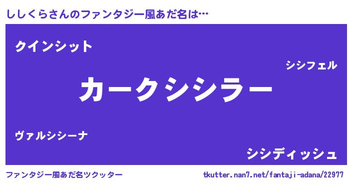 | ヘコむあだ名 | 『ししくら(苦笑)』『ししにゅー』 |