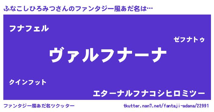 | 女子向けラノベタイトル風あだ名 | 『悪役ふなこしひろみつに転生したようですが、知った事ではありません』 |
