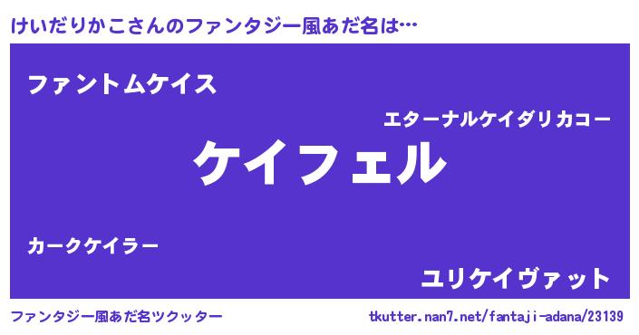 | 男性向けラノベタイトル風あだ名 | 『ケイダリカコアートオンライン』 |
