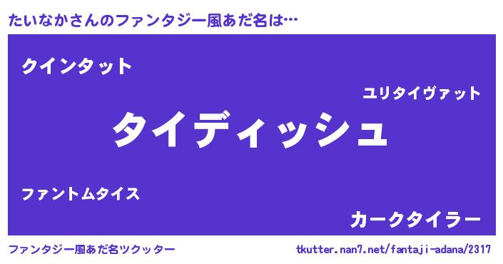 | 男性向けラノベタイトル風あだ名 | 『たいなかという概念が存在しない退屈な世界 』 |