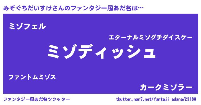 | 男性向けラノベタイトル風あだ名 | 『みぞぐちだいすけに滅ぼされるだけの簡単なお仕事です』 |