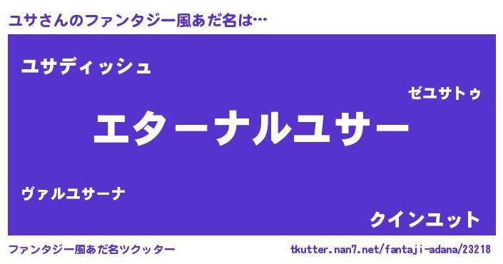 | ヒーロー風カッコイイあだ名 | 『ウルトラユサマン』『ネオユサ』 |