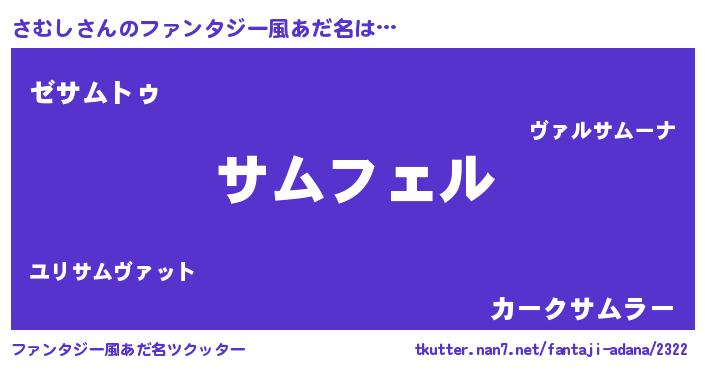 | 可愛いあだ名 | 『さんさん』『さむうちぇる』 |